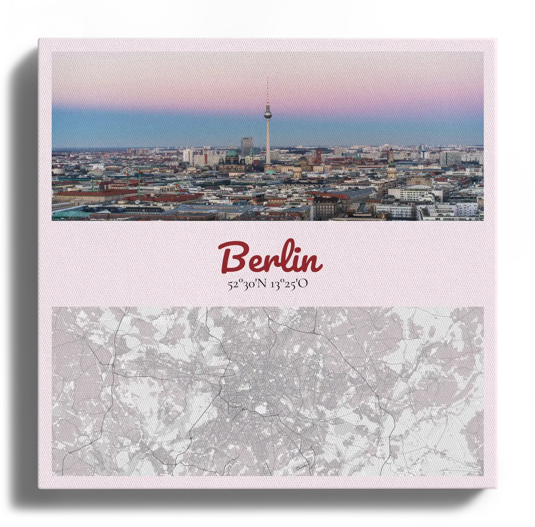 Custom city photo map with name, coordinates, and stylized map—fully customizable in color and view.